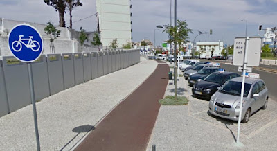 Alguns amigos talvez se lembrem de já por aqui ter referido nunca ter visto UMA única bicicleta na famosa "ciclovia do Teixeira" (ex-presidente da Câmara de Loures e responsável por tão útil Melhoramento), um quilómetro de piso betuminoso implantado no meio dum passeio de calçada à portuguesa, ali na avenida da Índia em Sacavém.